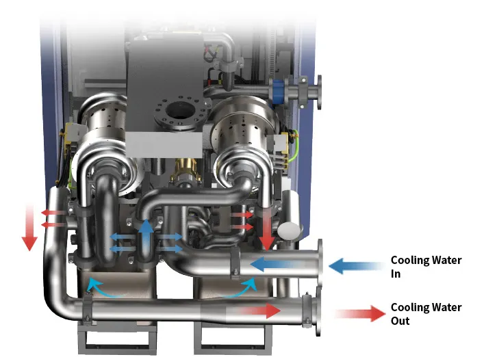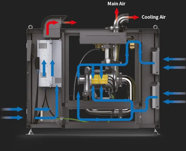 4bar 이상의 고압축 컴프레서에는 Inter/ after 쿨링 시스템이 설치됩니다.