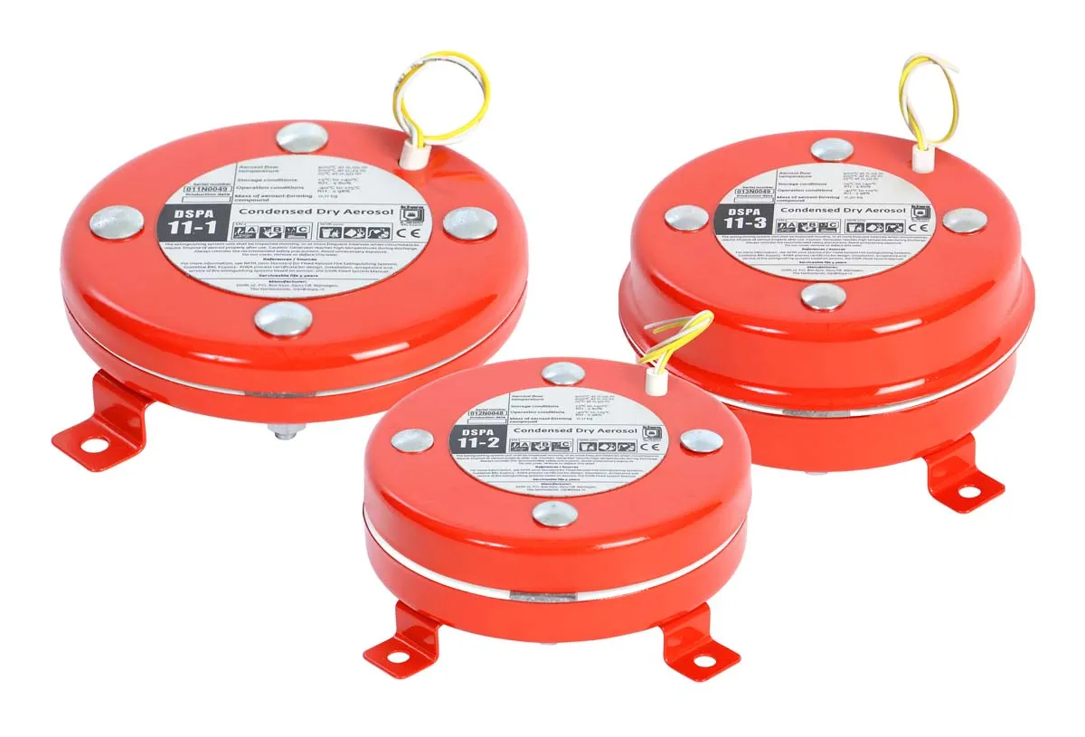 DSPA 소화 시스템은 일반적으로 하나 이상의 DSPA 에어로졸 발전기와 매우 정교한 화재 감지 시스템으로 구성되어 화재 발생 초기에 고객에게 알림을 제공하므로 고객이 불필요한 많은 피해를 예방할 수 있는 기회를 제공합니다. 화재가 발생하면 DSPA 발전기가 작동하여 화재를 신속하게 진압합니다. DSPA 에어로졸 발전기는 매우 효과적이고 압력을 가하지 않으며 환경 친화적입니다.